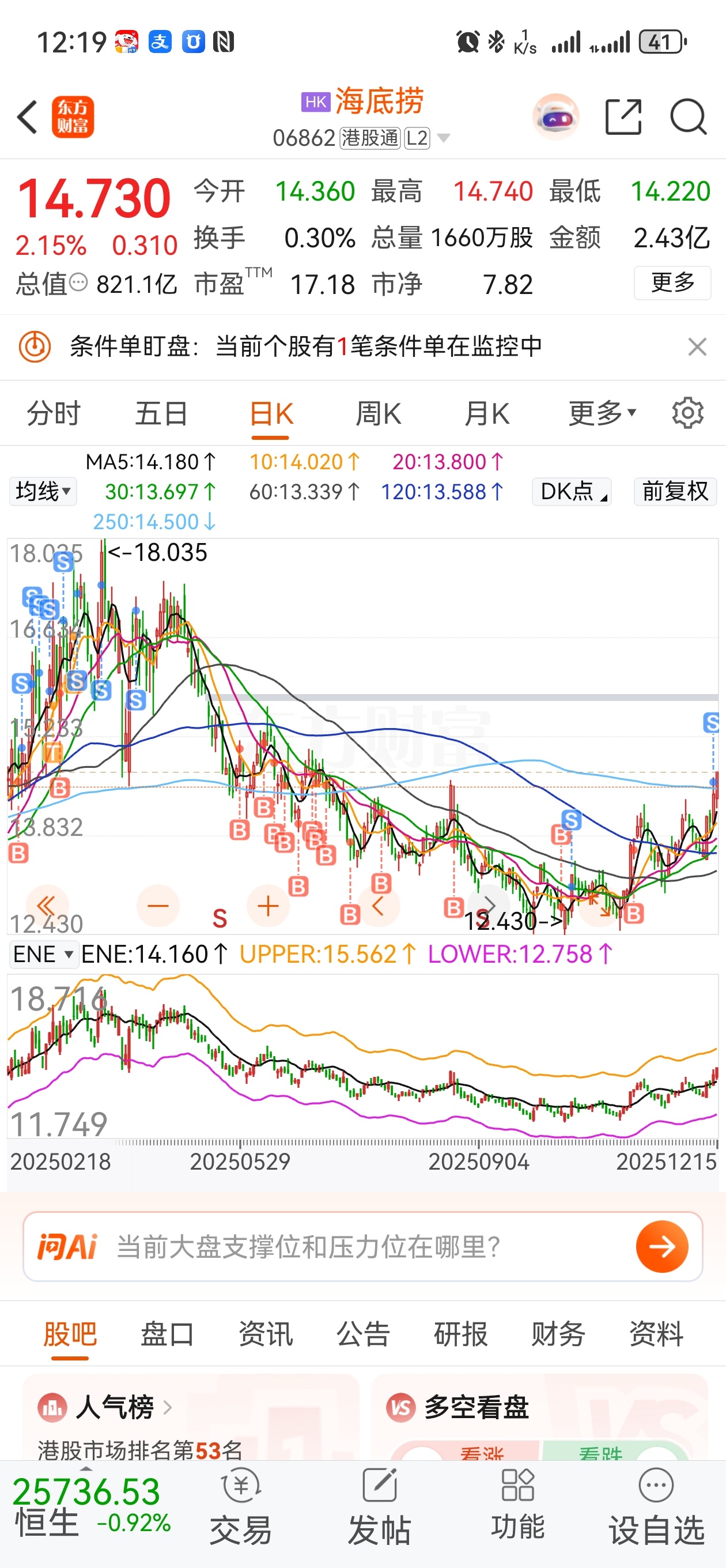 $海底捞(HK|06862)$ 继续加油!终于转红了