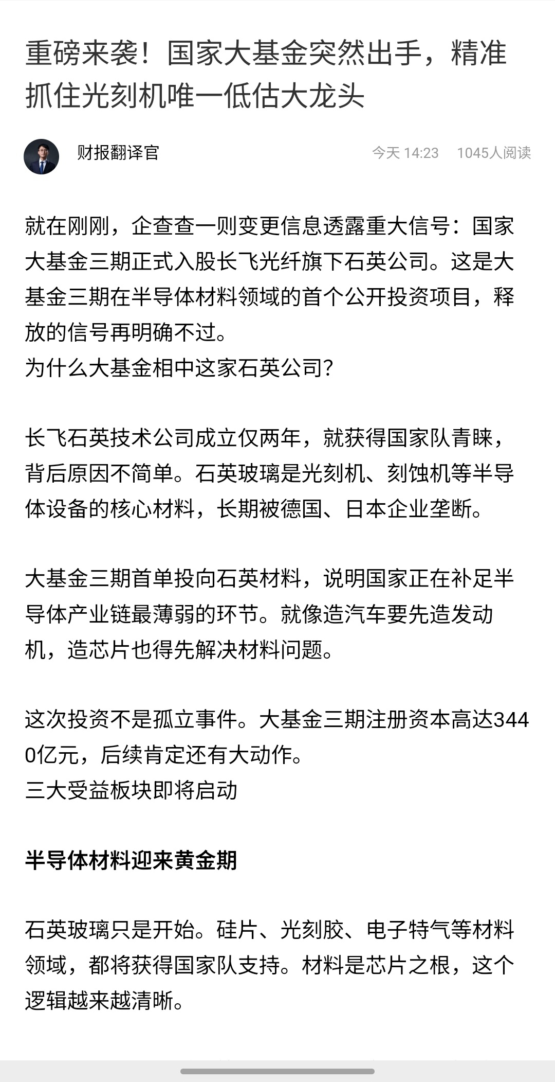 $长飞光纤光缆(HK|06869)$ 新增光刻机概念