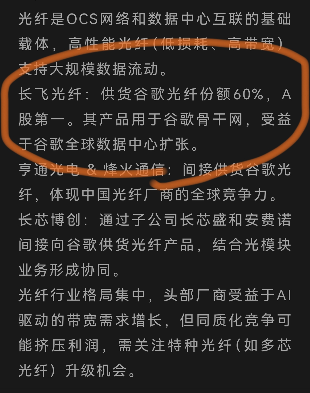 $长飞光纤光缆(HK|06869)$ 长飞供货谷歌60%份额