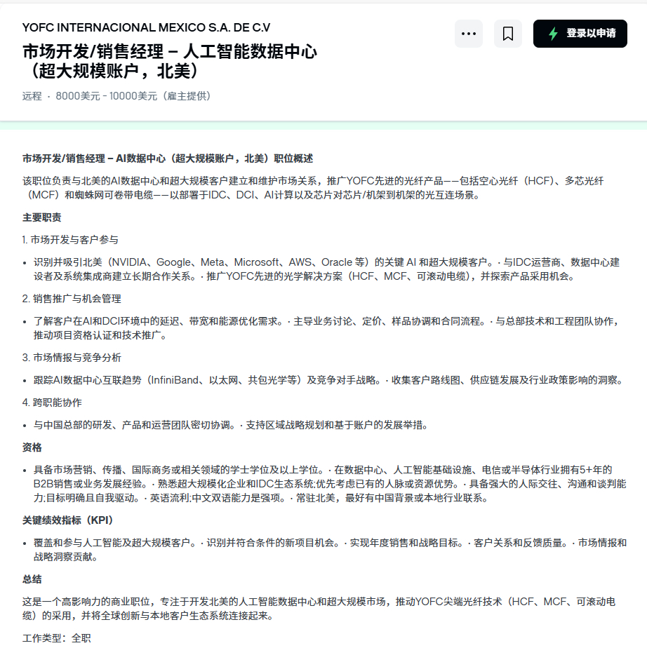 $长飞光纤光缆(HK|06869)$ 北美链在招兵买马了