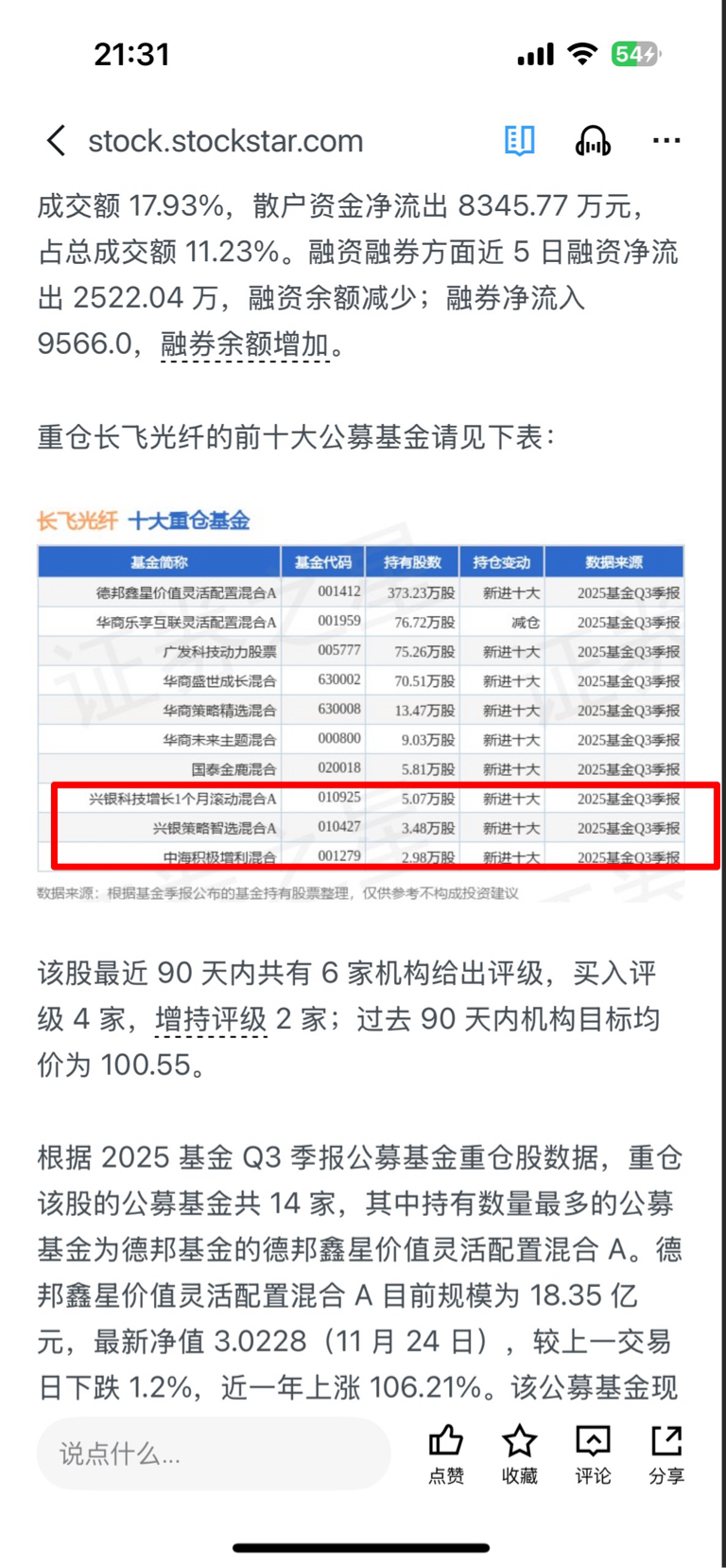 $长飞光纤光缆(HK|06869)$ 说了都是散户还不信,60%的港股通,这十大重仓,这基金还没我原来买的多。光是散户,超级割韭菜股。今年一年就他回撤最多。赚20几个变成亏。