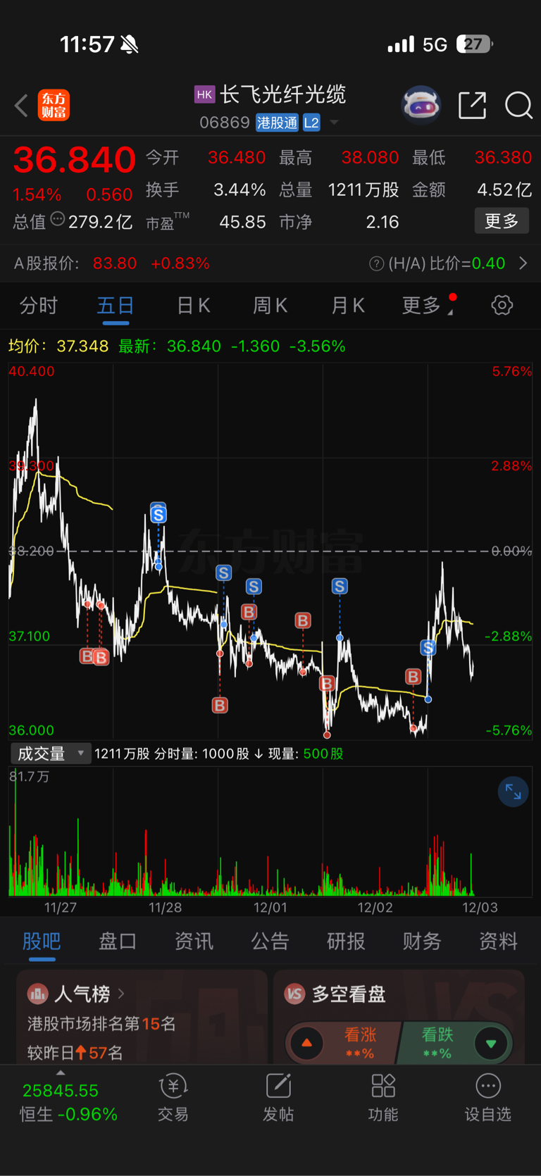 $长飞光纤光缆(HK|06869)$ 赚点零花钱