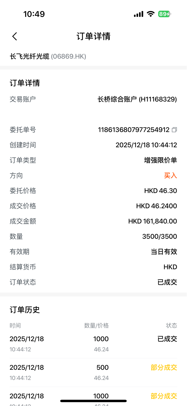 $长飞光纤光缆(HK|06869)$ 这个账户没仓位了,换个账户速度把美元换成港币,加仓了