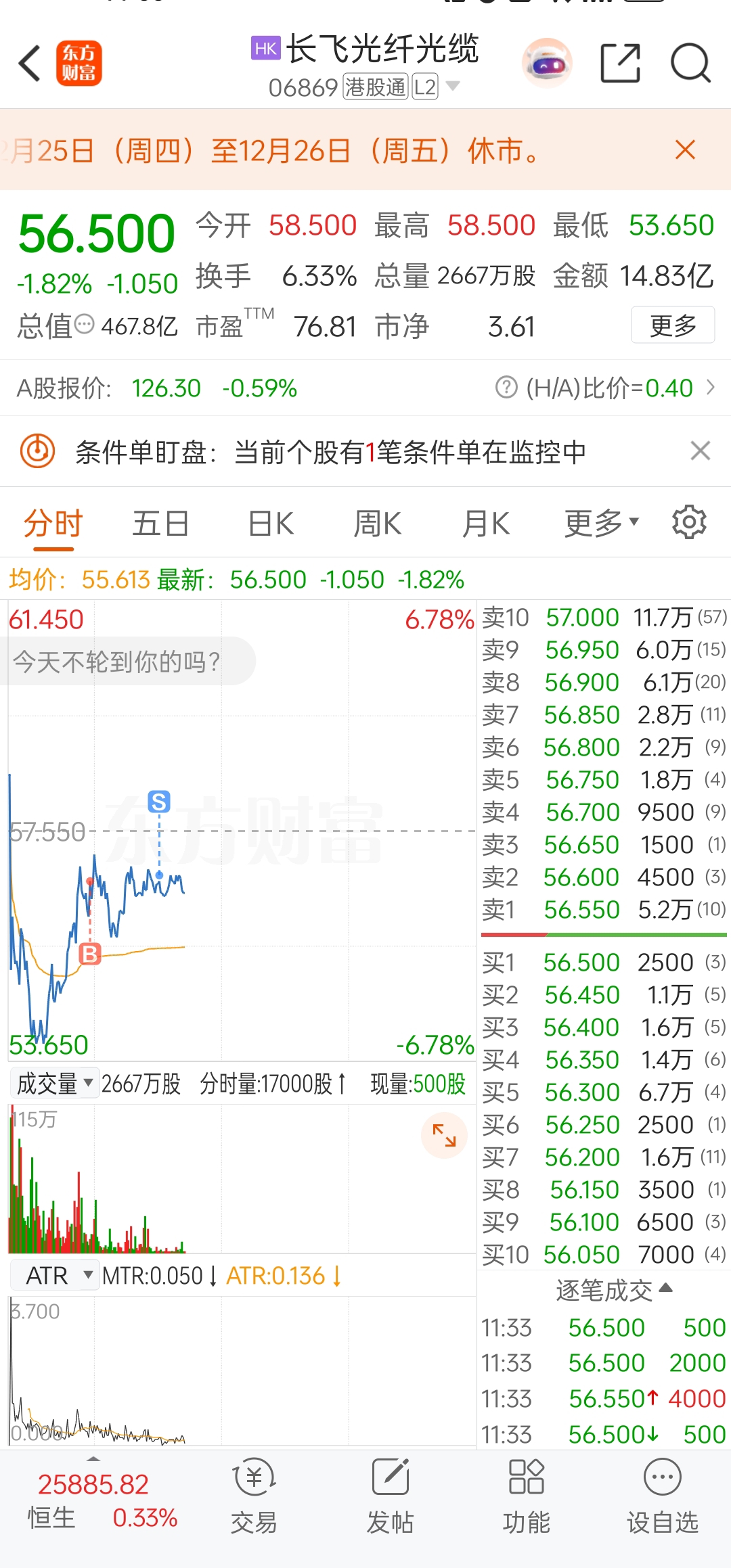 $长飞光纤光缆(HK|06869)$ 今天是给证券公司打工的