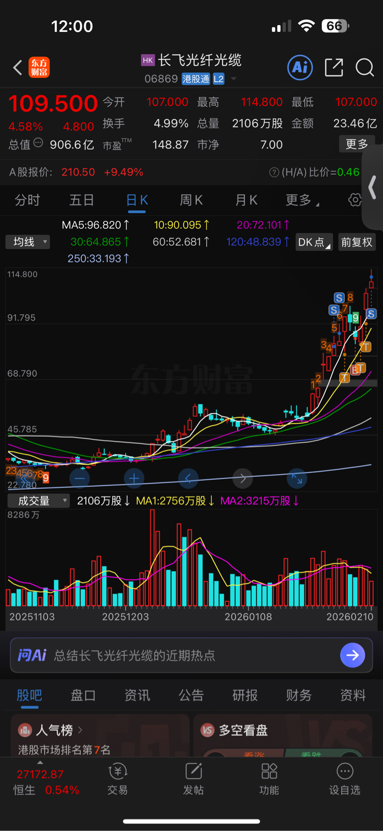 $长飞光纤光缆(HK|06869)$ 再次减仓 果然人只能赚到自己认知的钱 这一路的T少赚20多个