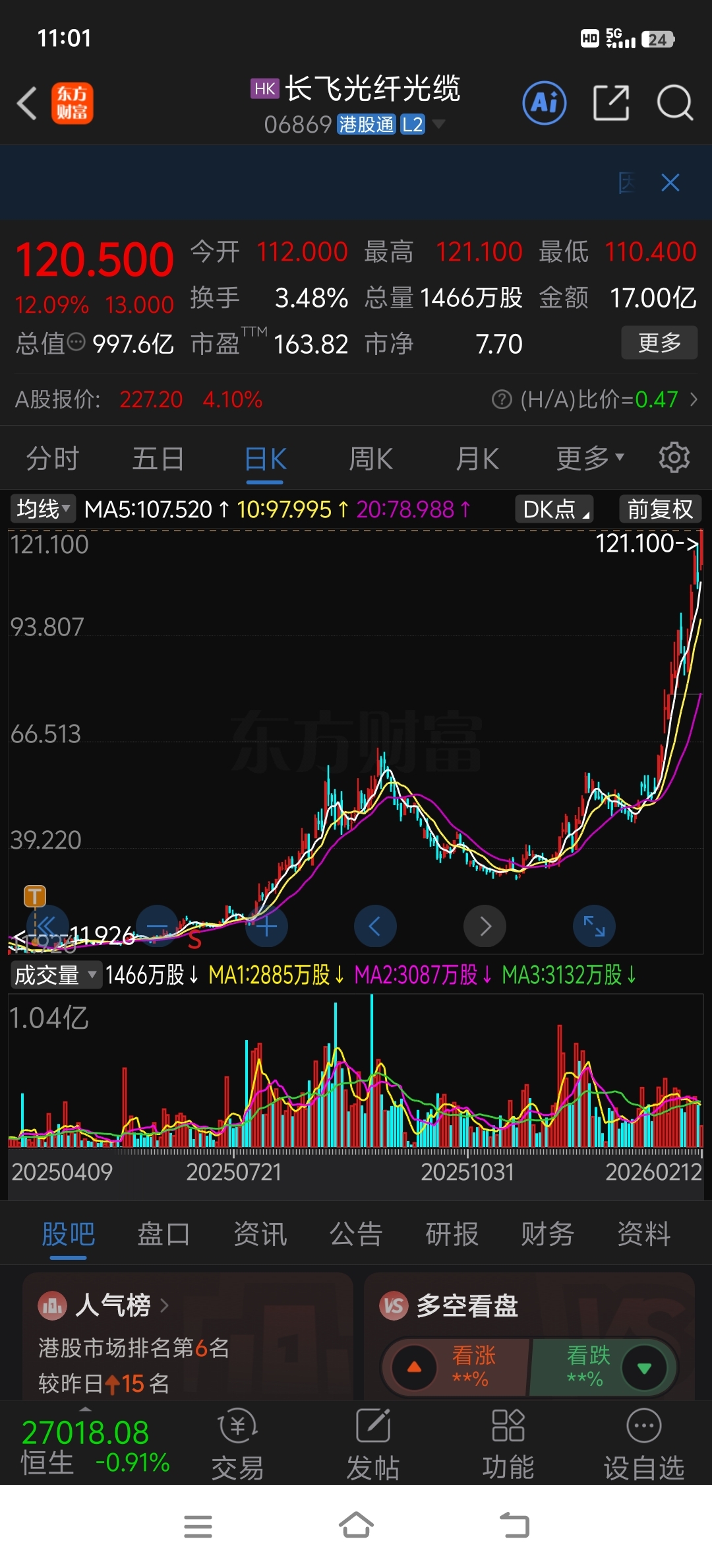 $长飞光纤光缆(HK|06869)$ 我丢,十几倍!就这么扔了!