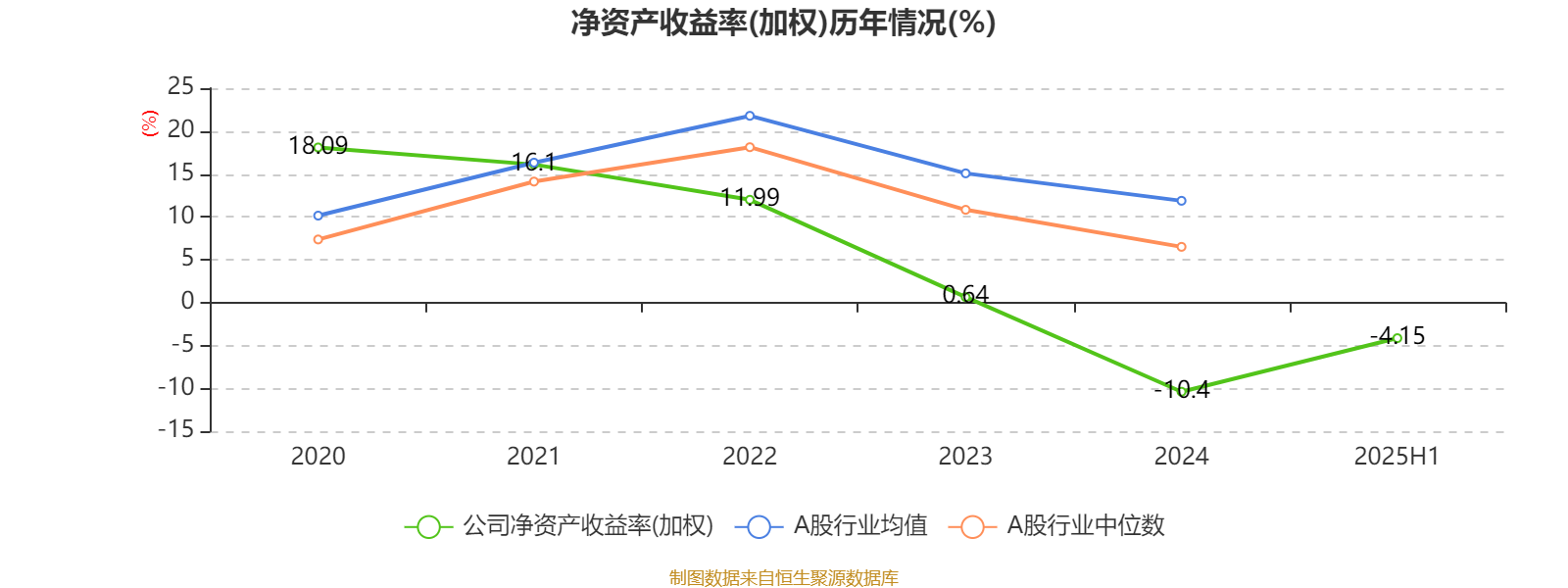 2025年上半年,公司平均净资产收益率为-4.15%,较上年同期上升0.47个百分点。