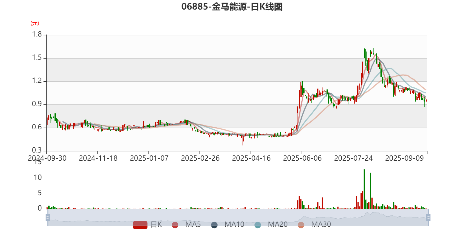 以9月28日收盘价计算,金马能源目前市净率(TTM)约0.15倍,市销率(TTM)约0.05倍。