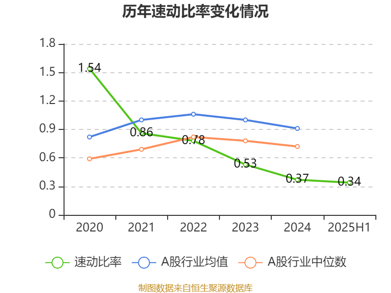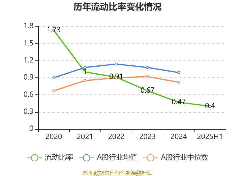 2025年上半年,公司流动比率为0.40,速动比率为0.34。