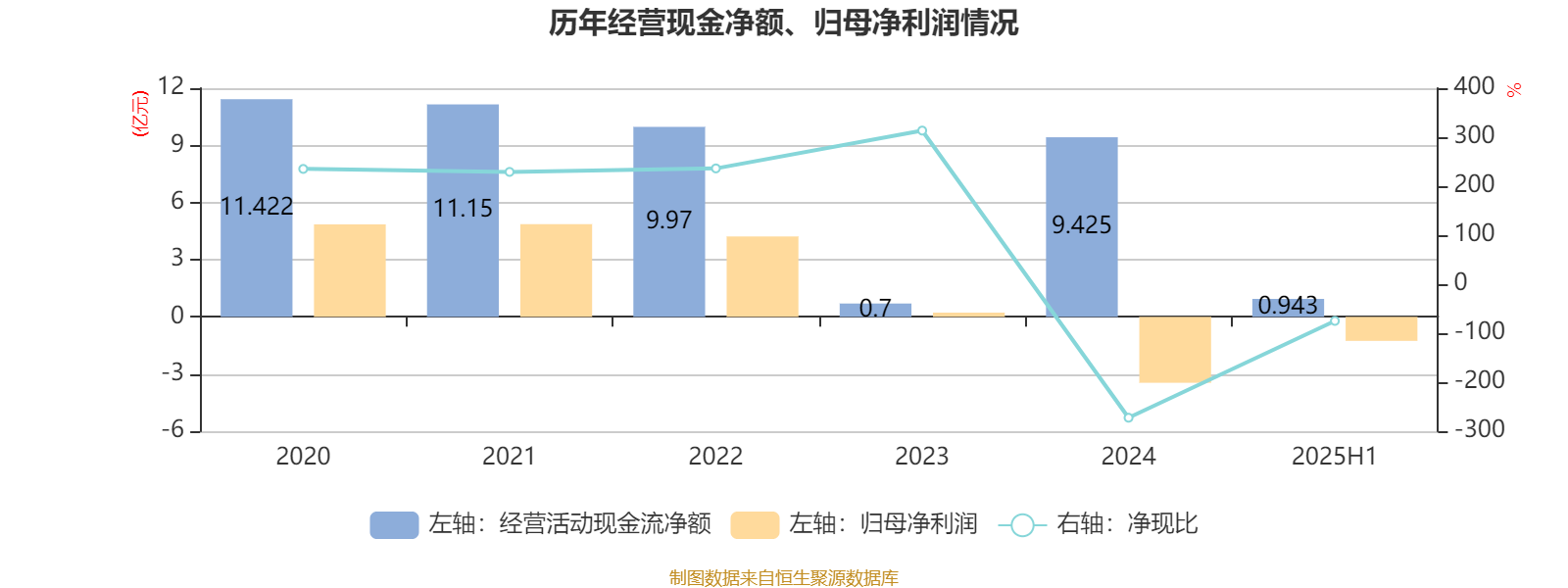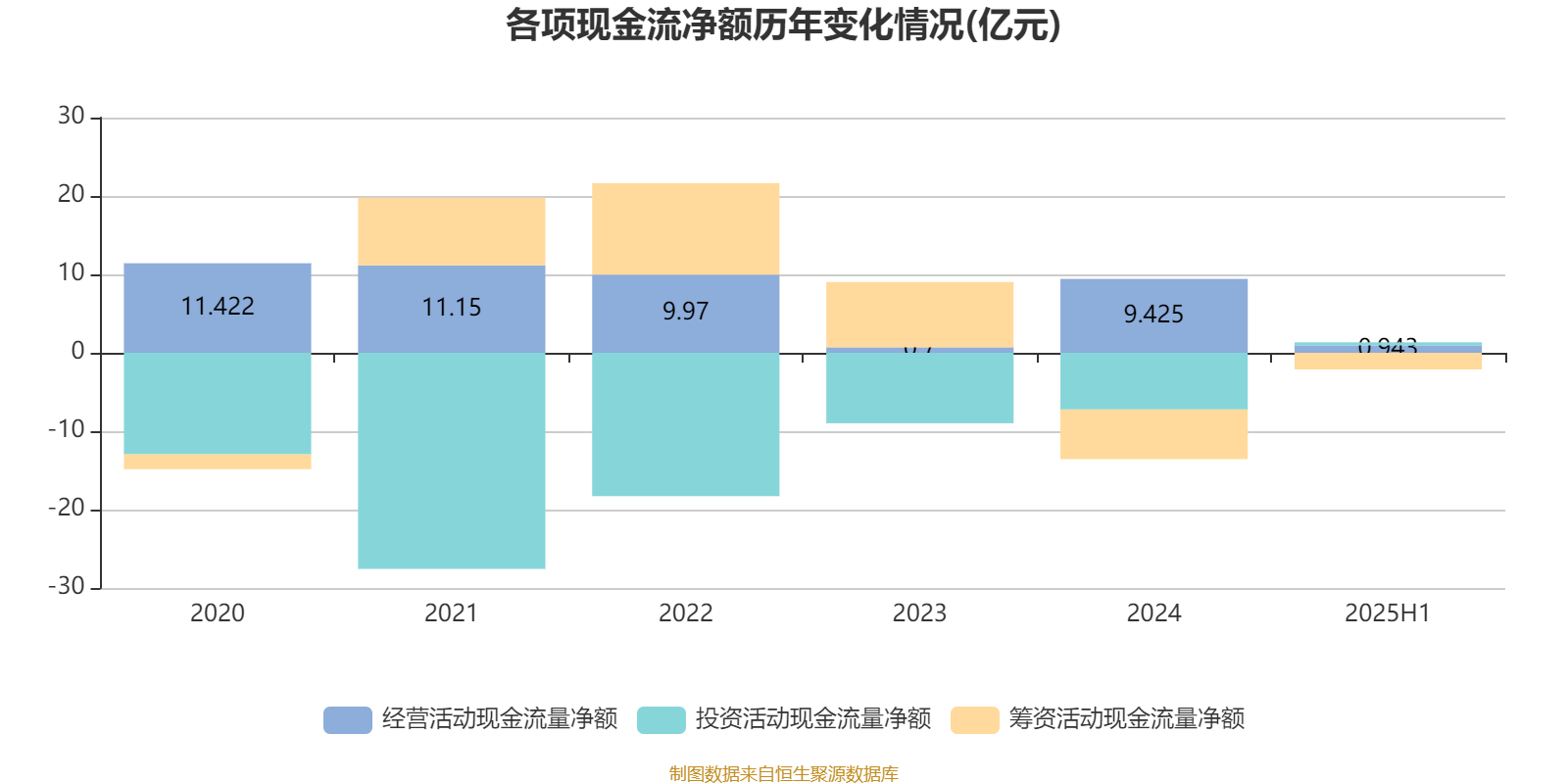 2025年上半年,公司经营活动现金流净额为9429.6万元;筹资活动现金流净额-2.12亿元;投资活动现金流净额3902万元。