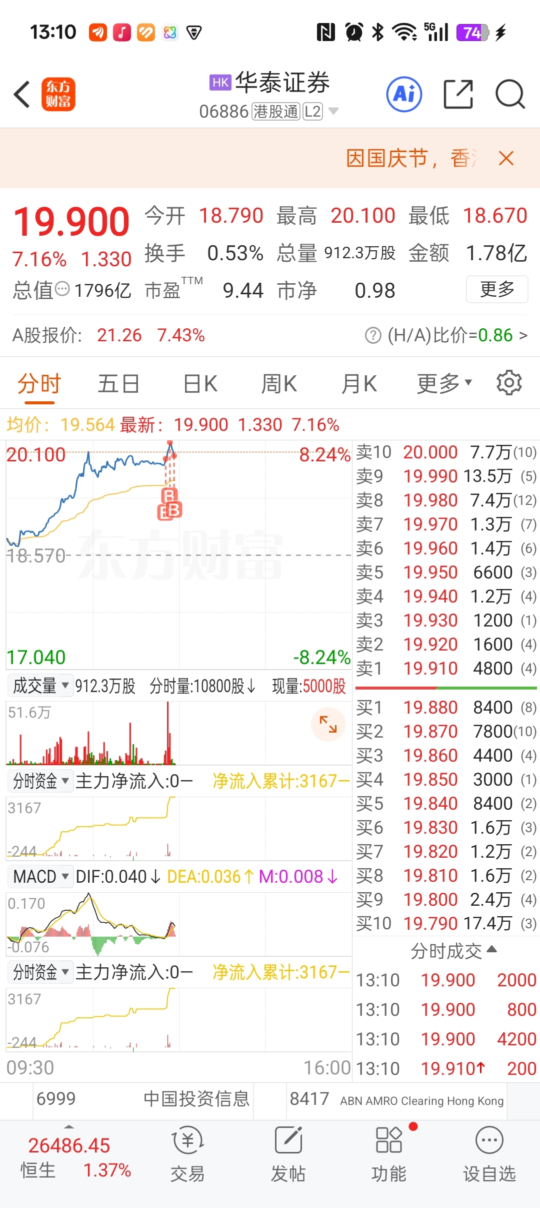 $华泰证券(HK|06886)$ 满仓干