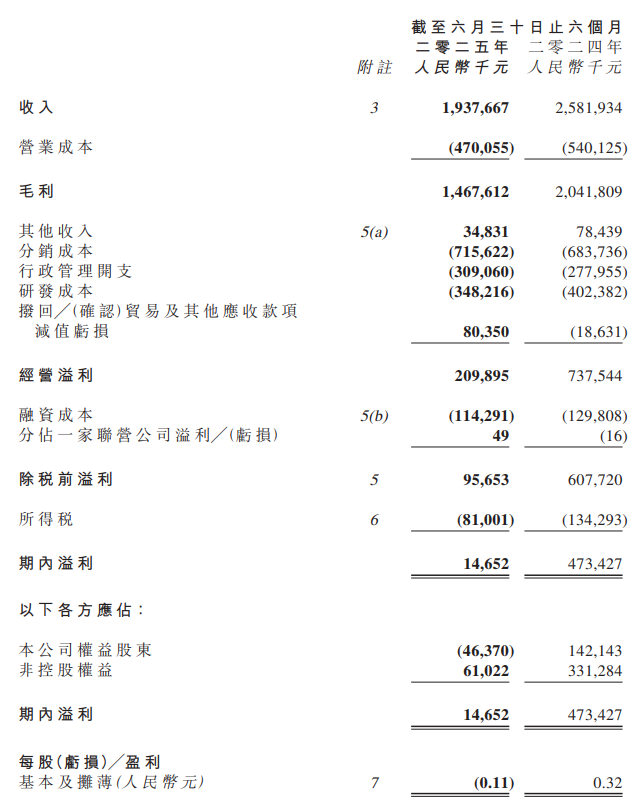 今年上半年,公司营业额为人民币19.38亿元,同比减少24.95%;毛利14.68亿元,同比减少28.12%。其中,磷酸奥司他韦产品上半年实现营业额13.01亿元,仍保持行业领先地位。