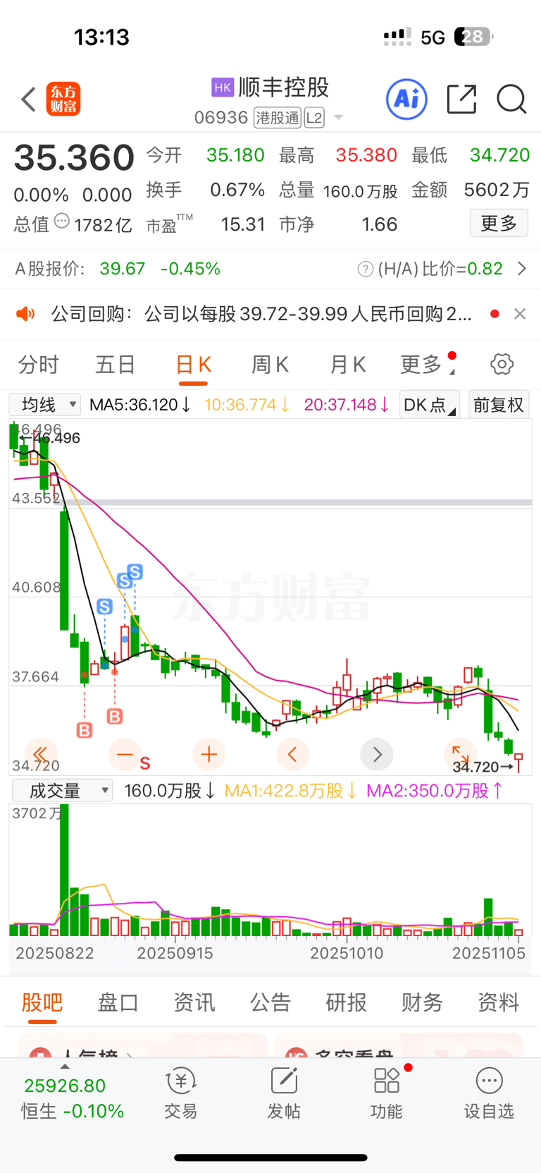 $顺丰控股(HK|06936)$ 是不是可以建个仓