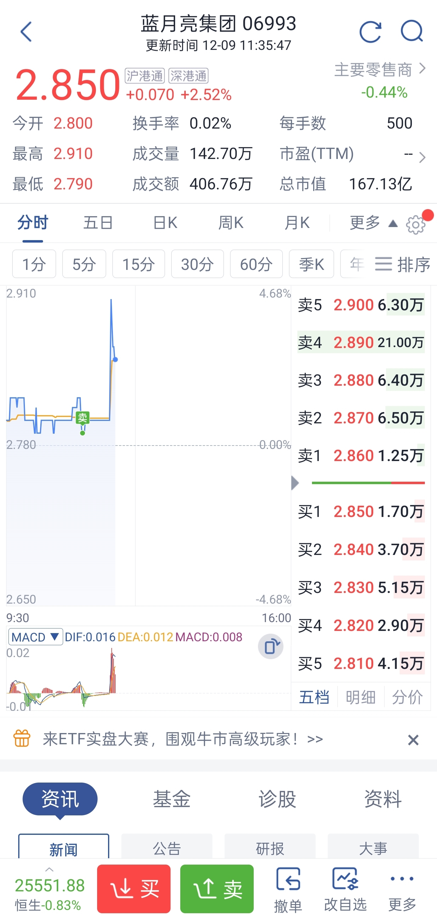 $蓝月亮集团(HK|06993)$ 亏13个点割了,拉升???