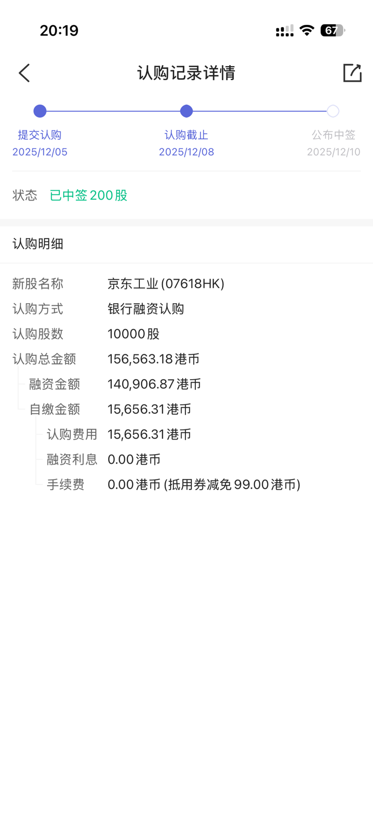 $京东工业(HK|07618)$ 第一次中签(大 a 这么多年一次没中