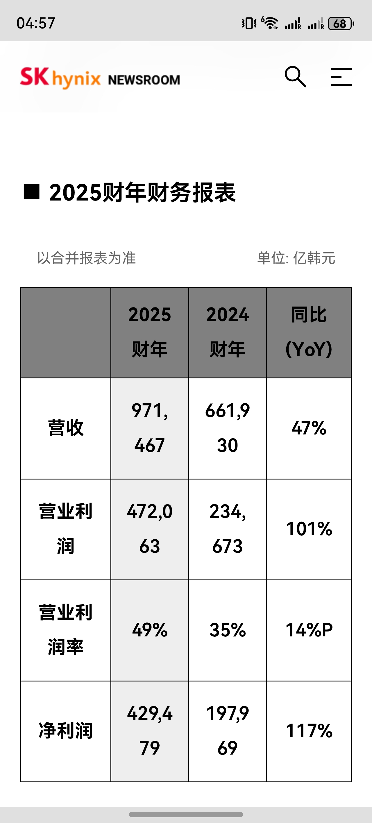 财报出了!小韩子的存储真是赚麻了