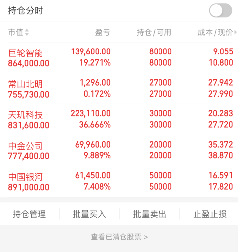 今日新把握计划:今天如果市场环境向好,手上的如果都保持稳且强势,就会继续格局,如果有转弱的,就会撤掉,去弱留强,另外如果新关注的东方精工合适的话,也会考虑调入。
