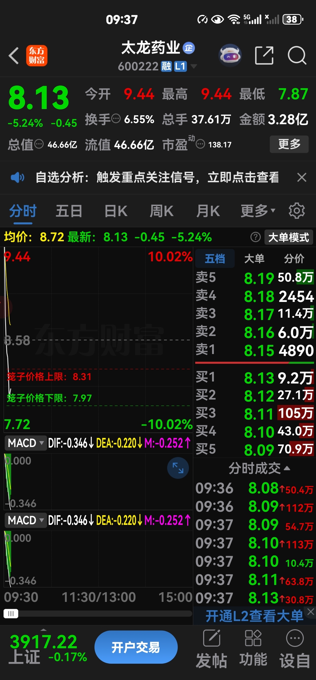 今天进太龙药业。远离啊吹原始股硅鑫【8..13元抄底抄底了】太爽了,今天只进太龙