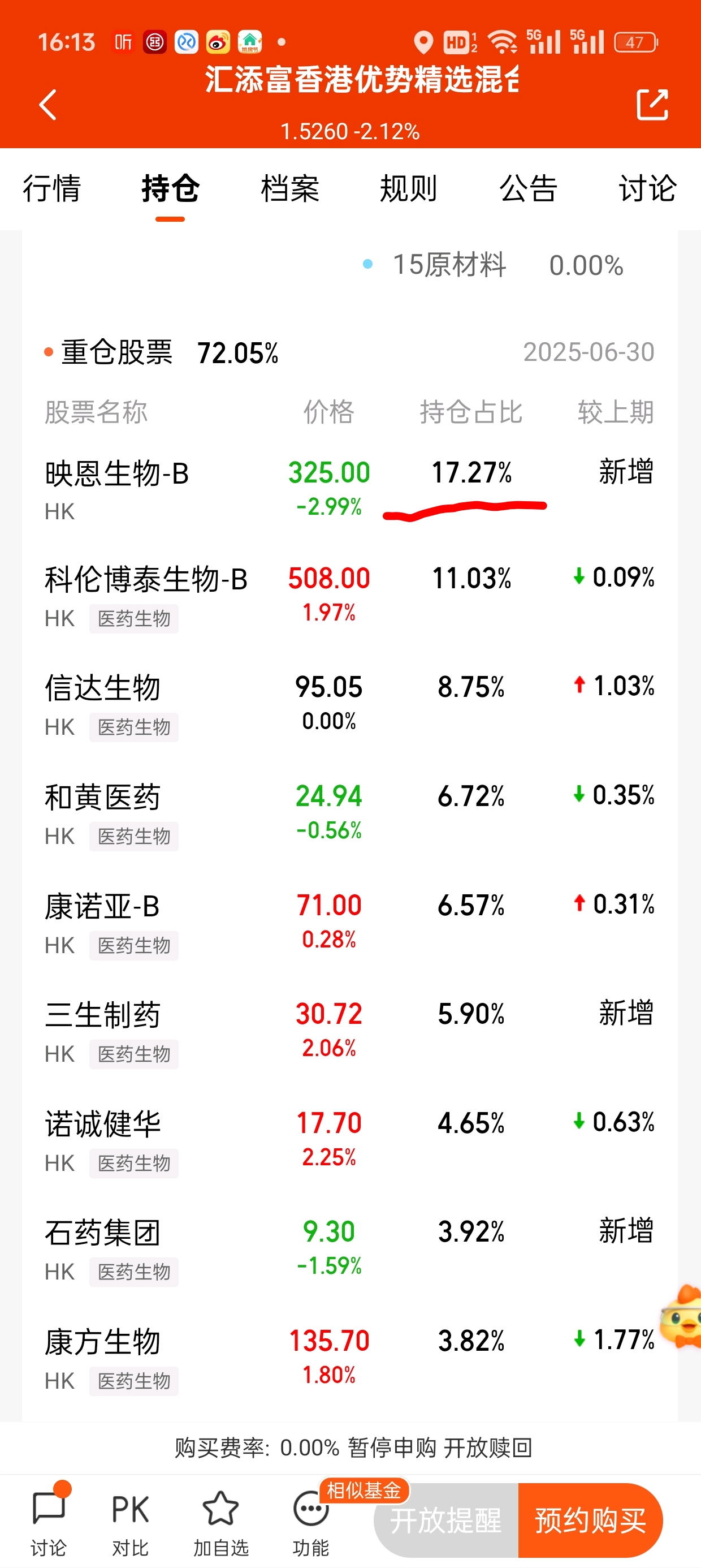 $映恩生物-B(HK|09606)$ 主要是基金超配了,还有个ETF也是,最近一直调整比例,差不多了