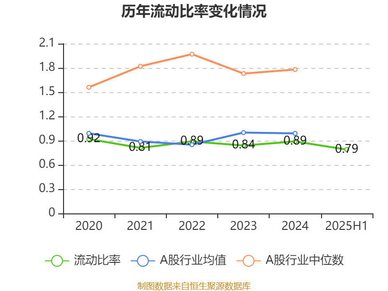 2025年上半年,公司流动比率为0.79,速动比率为0.78。