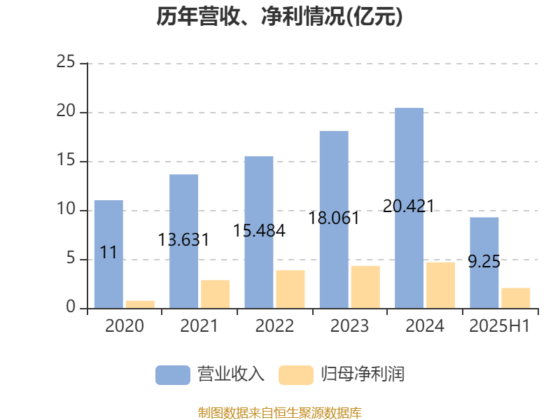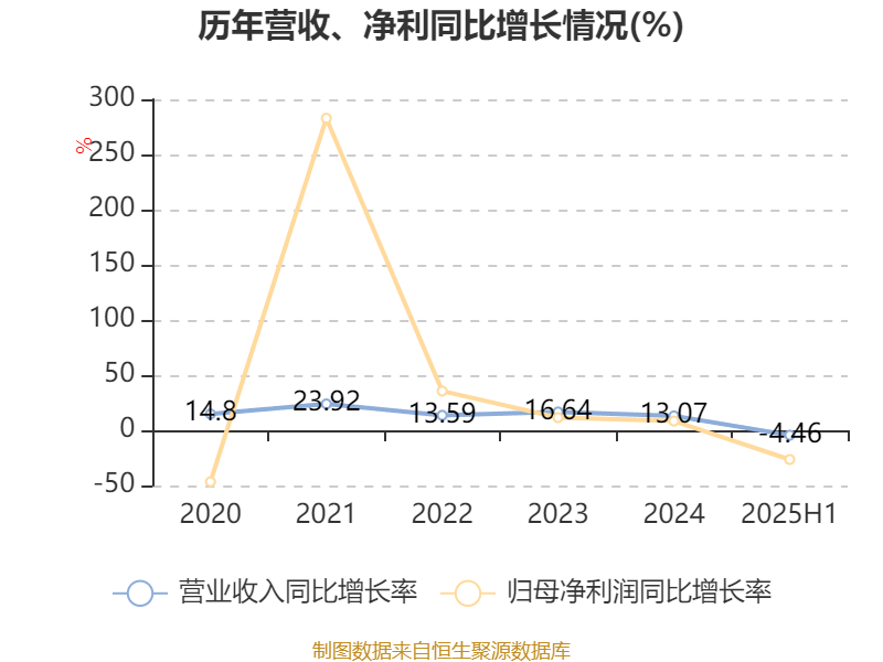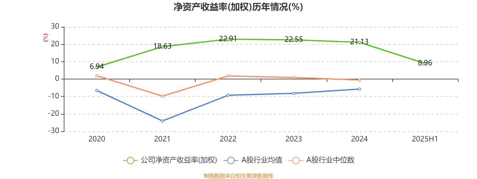 2025年上半年,公司平均净资产收益率为8.96%,较上年同期下降4.28个百分点。