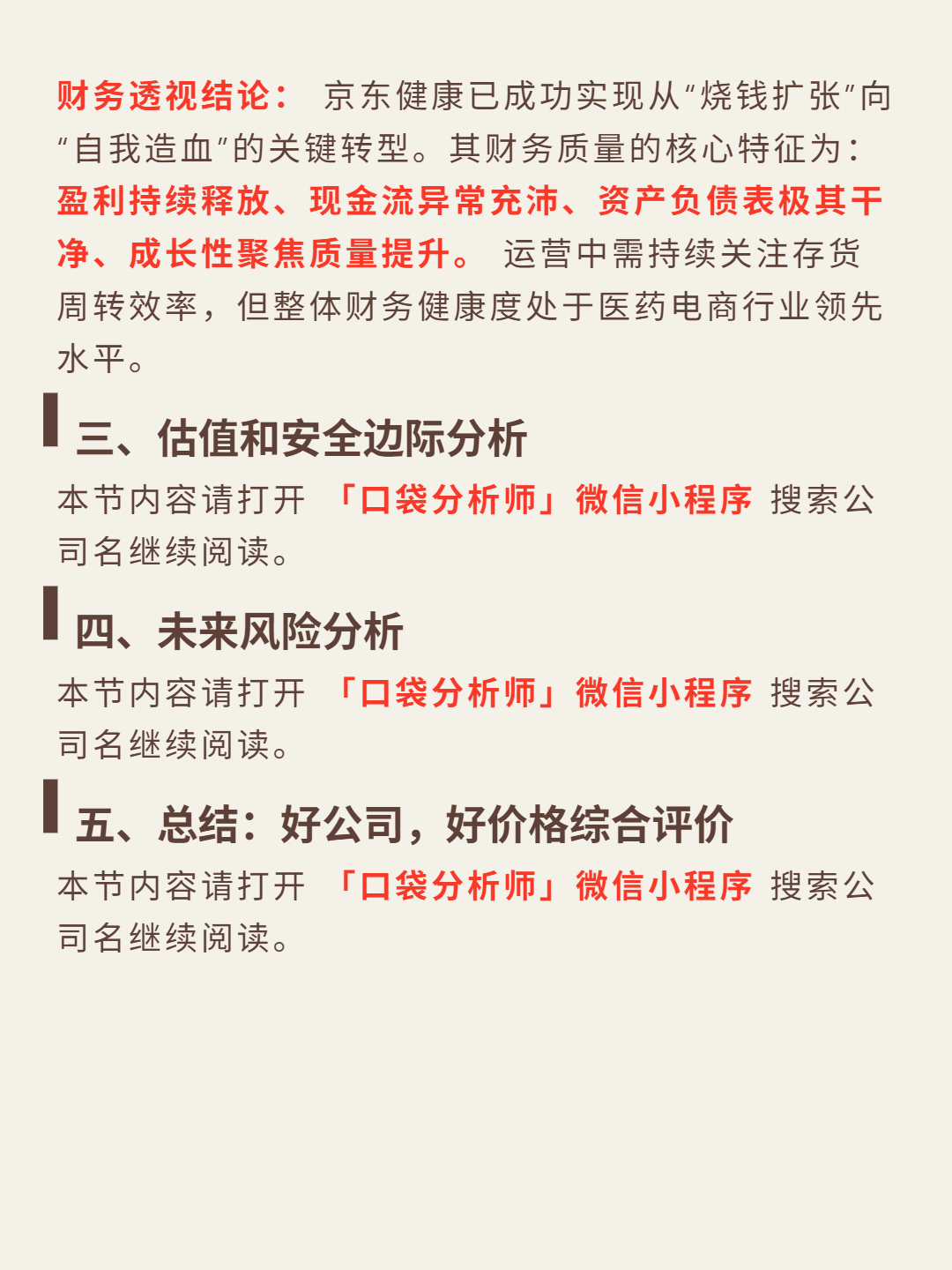 $京东健康(HK|06618)$$阿里健康(HK|00241)$$平安好医生(HK|01833)$研究京东健康,核心结论是已实现从“烧钱扩张”到“自我造血”的转型,财务健康度行业领先。