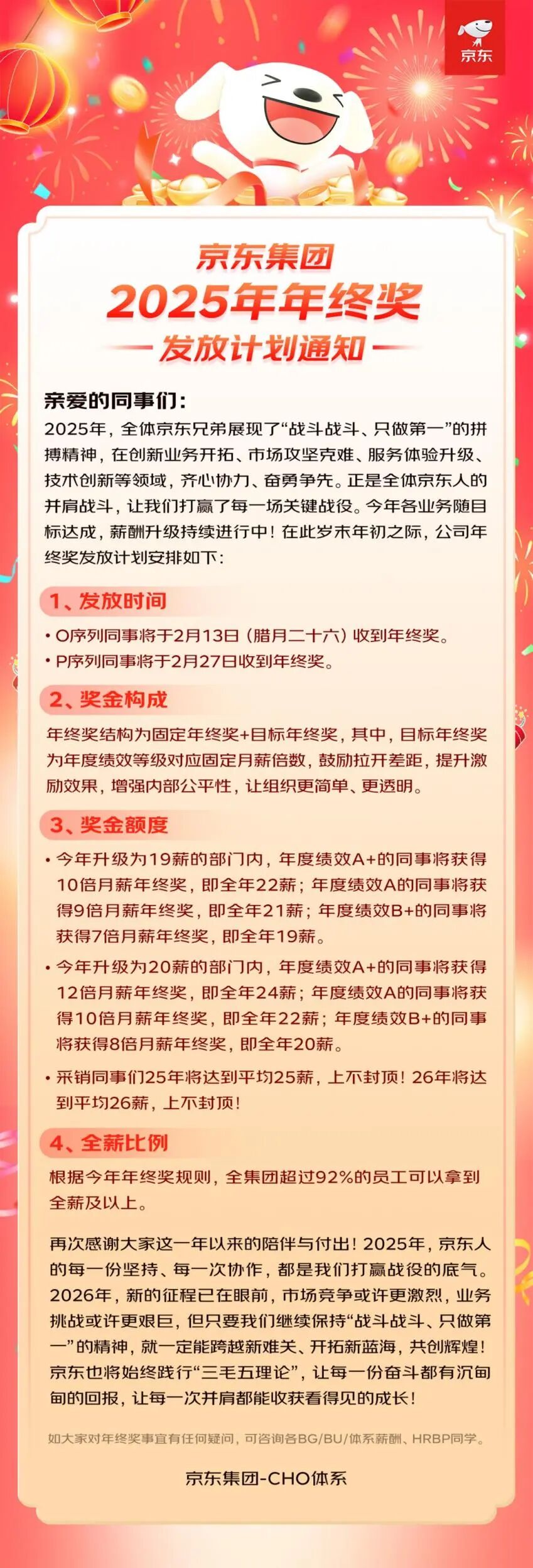 近期,京东集团公布2025年年终奖发放计划通知,引发市场高度关注。