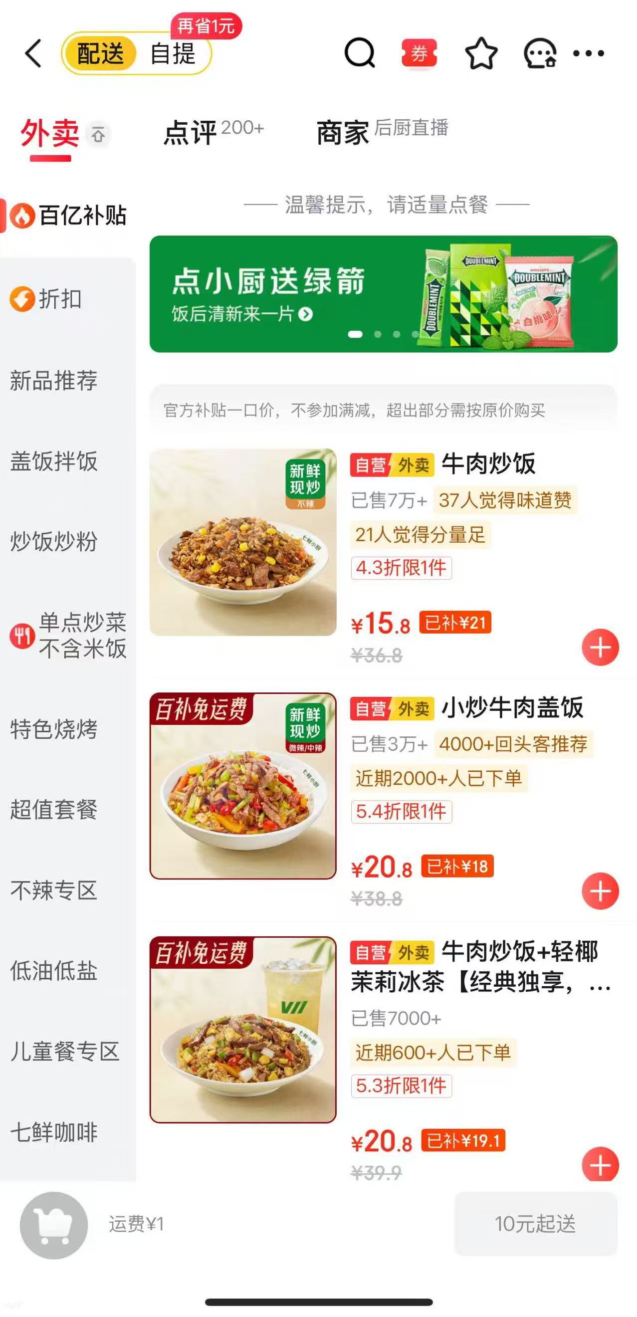 而七鲜小厨的布局则始于2025年7月,其首家门店在北京东城区启动试运营,聚焦便捷餐饮需求,主打“外卖+自提”的轻资产模式,菜品供给上涵盖意面、特色小吃、炒饭炒粉、拌饭盖饭及特色烧烤等品类,记者在京东外卖平台查询发现,其商品单价多集中在10元至30元区间,部分单品券后价格更低。