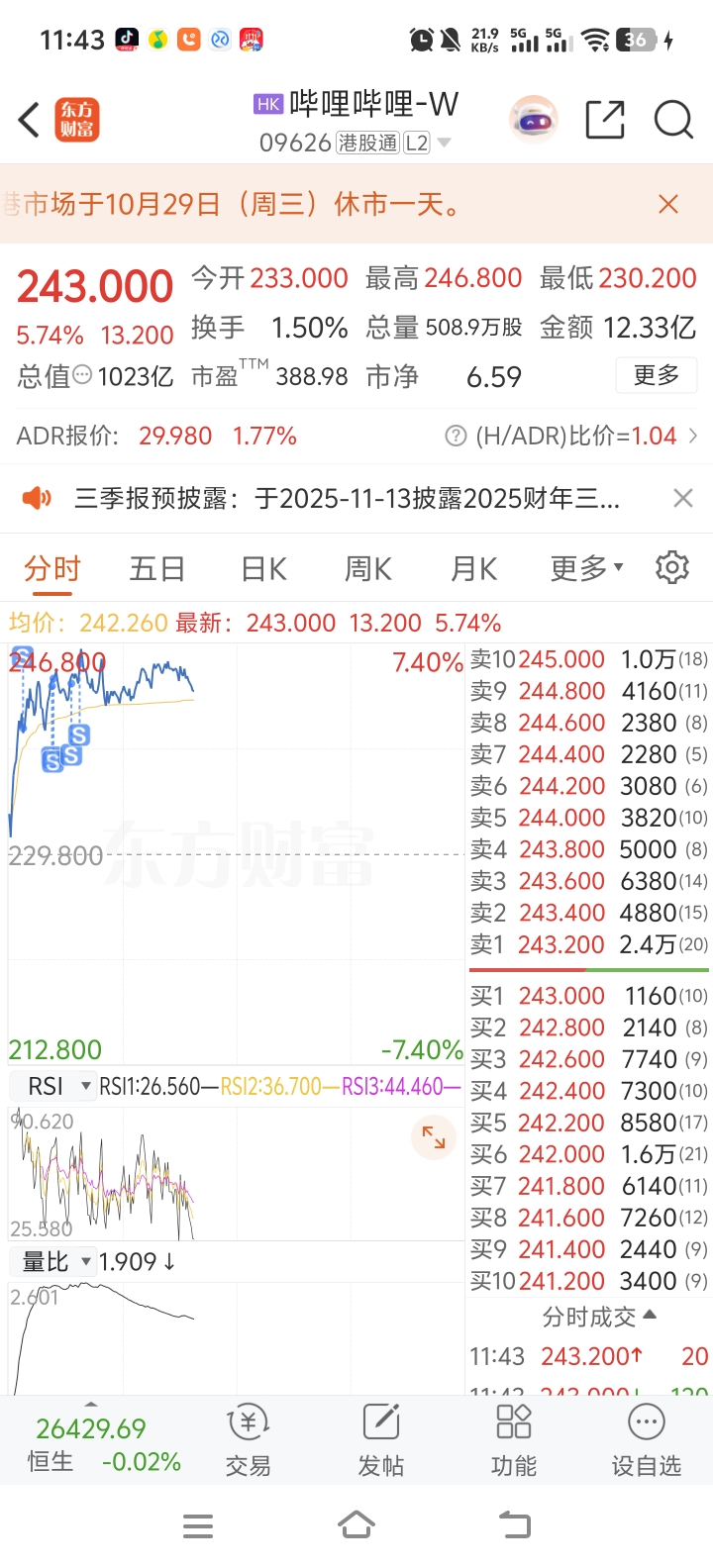 $哔哩哔哩-W(HK|09626)$ 就是我砸的