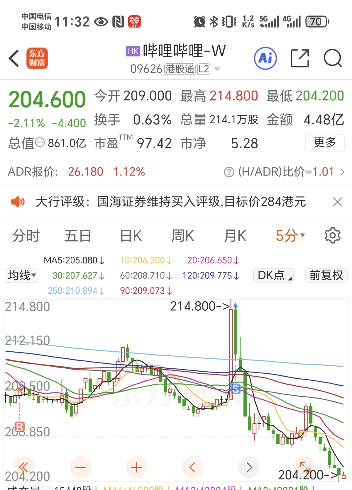 $哔哩哔哩-W(HK|09626)$ 感谢主力不杀之恩!!