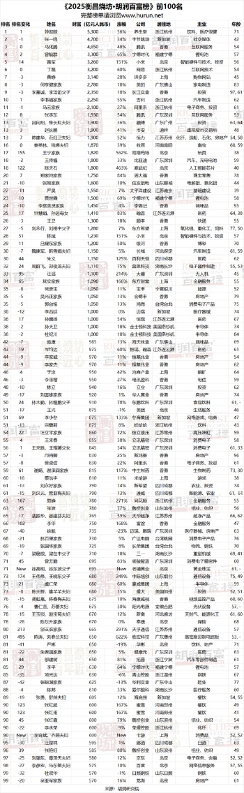 值得注意的是,新质生产力企业家群体在榜单前100名中占比达60%,百富榜前十中占比过50%。胡润表示:“中国民营经济展现出强大的韧性和活力,新质生产力正成为推动经济发展的重要力量。”