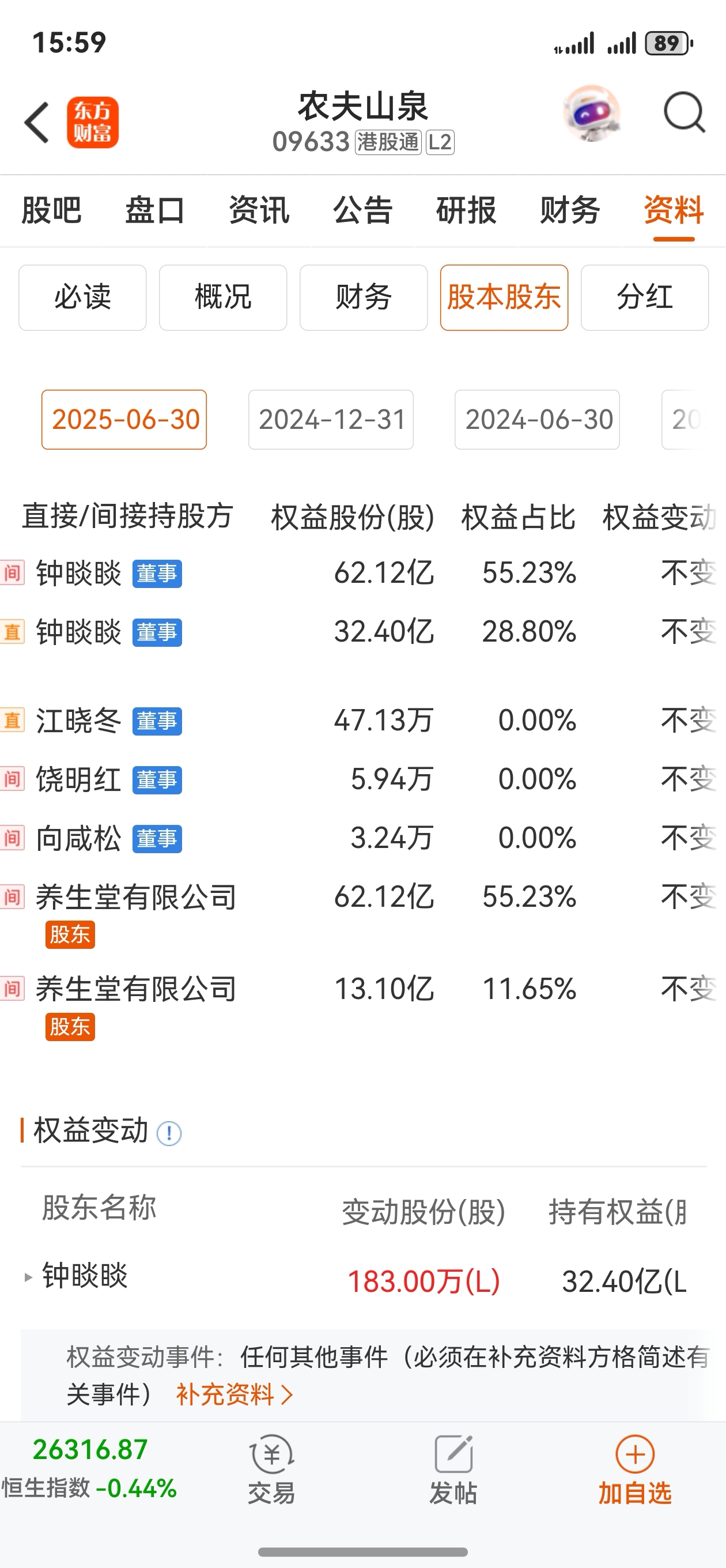 $农夫山泉(HK|09633)$ 我想问问,一个上市公司,发行的股份百分之84是老板和儿子的,其他机构和自然人才占比16,股价为啥涨的那么高,市盈率四十几倍?分红那么低,究竟是谁在买他的股票?