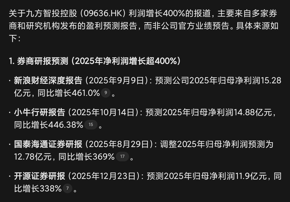 一些水军混淆视听,故意将A股规则套用在港股上,港股没有业绩50%变动必须在1月31日前预告的强制性要求。综合九方发布的半年报以及机构的预测,全年利润增长200%以上是大概率。最近的暴跌是恶意做空者和他们雇佣的水军一手造成,其目的是做空获利的同时在低价骗取筹码,然后反手做多,趁着你的怀疑犹豫把你远远甩在身后,到那时你在去追高吗? 所以,拿好手中的筹码,他们敢砸就和他们低价抢,然后坐等九方回到前高,超越前高,因为 它值这个价。