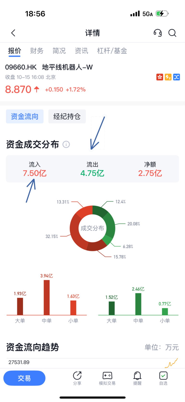 $地平线机器人-W(HK|09660)$ 哪位股友可以帮我解答一下疑惑,为啥资金流入与资金流出额度不相等
