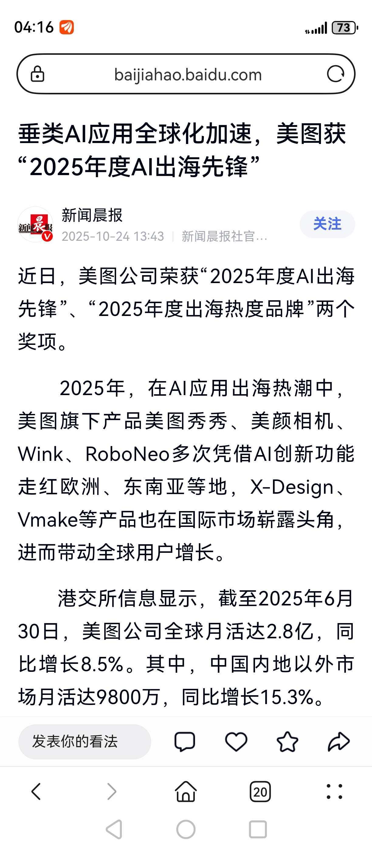 美图公司01357:福建板块迎来多重利好。美图公司站在十五五规划时代最强风口上,加快高水平科技自立自强,引领发展新质生产力,深入推进数字中国建设。