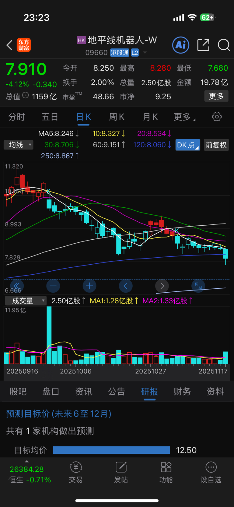 $地平线机器人-W(HK|09660)$ 有种你跌到我成本线去