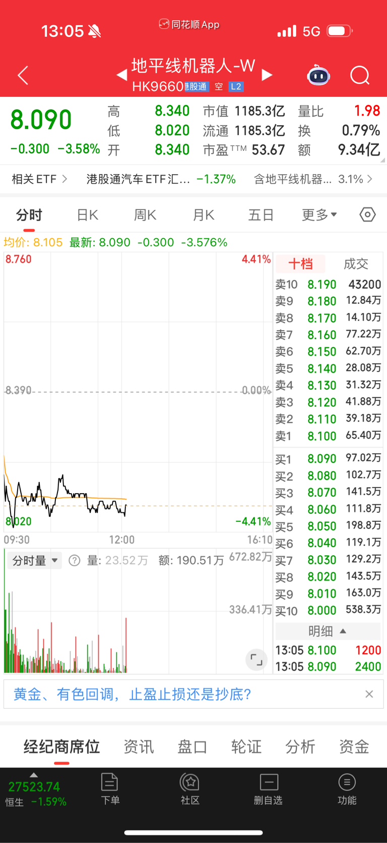 $地平线机器人-W(HK|09660)$ 看买盘最小阻力向上了