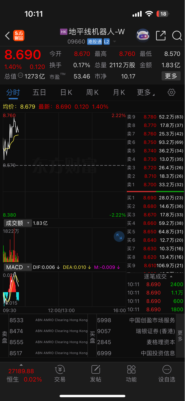 $地平线机器人-W(HK|09660)$ 也没涨,有资金在离场?