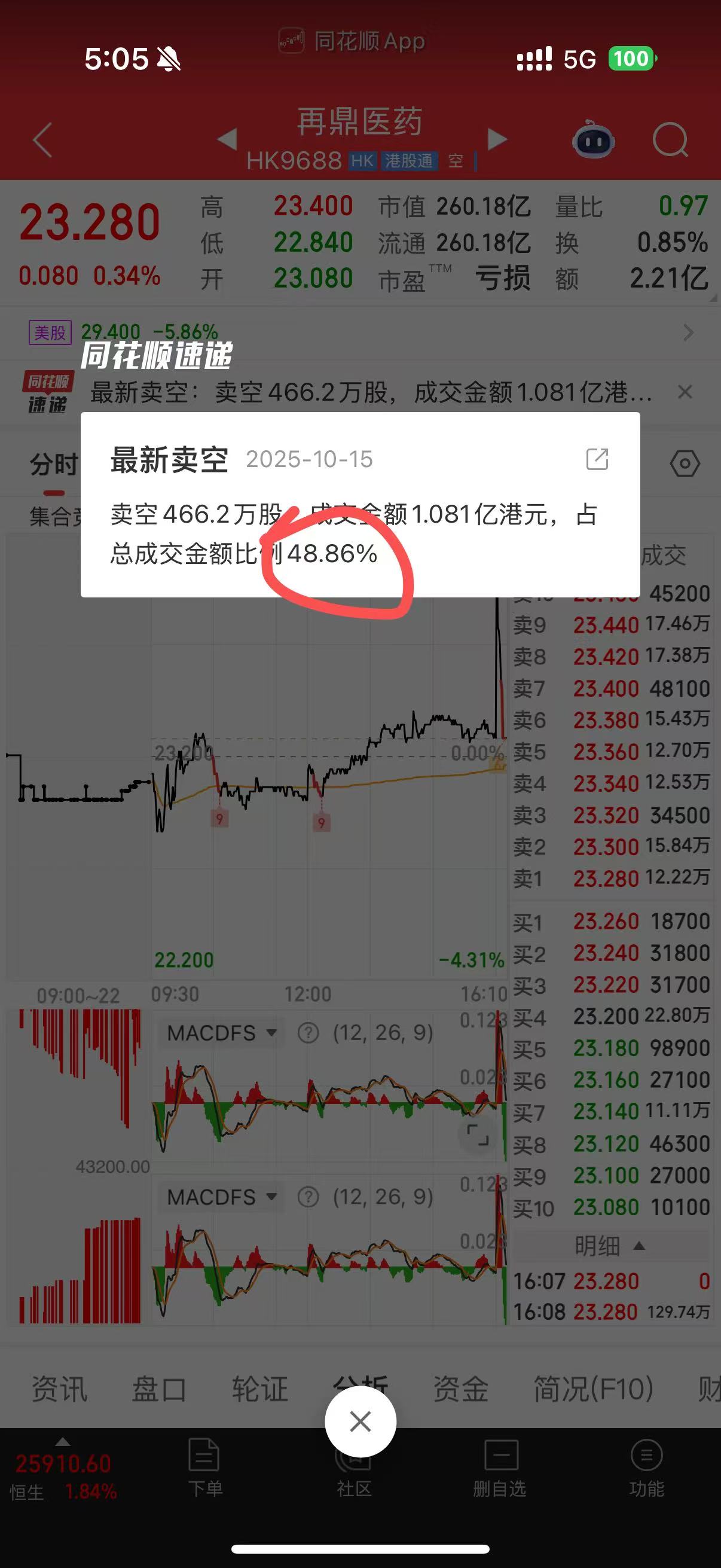 卖空比例达到50%(正常值1-10%),今天因板块躲过后面必定大跌