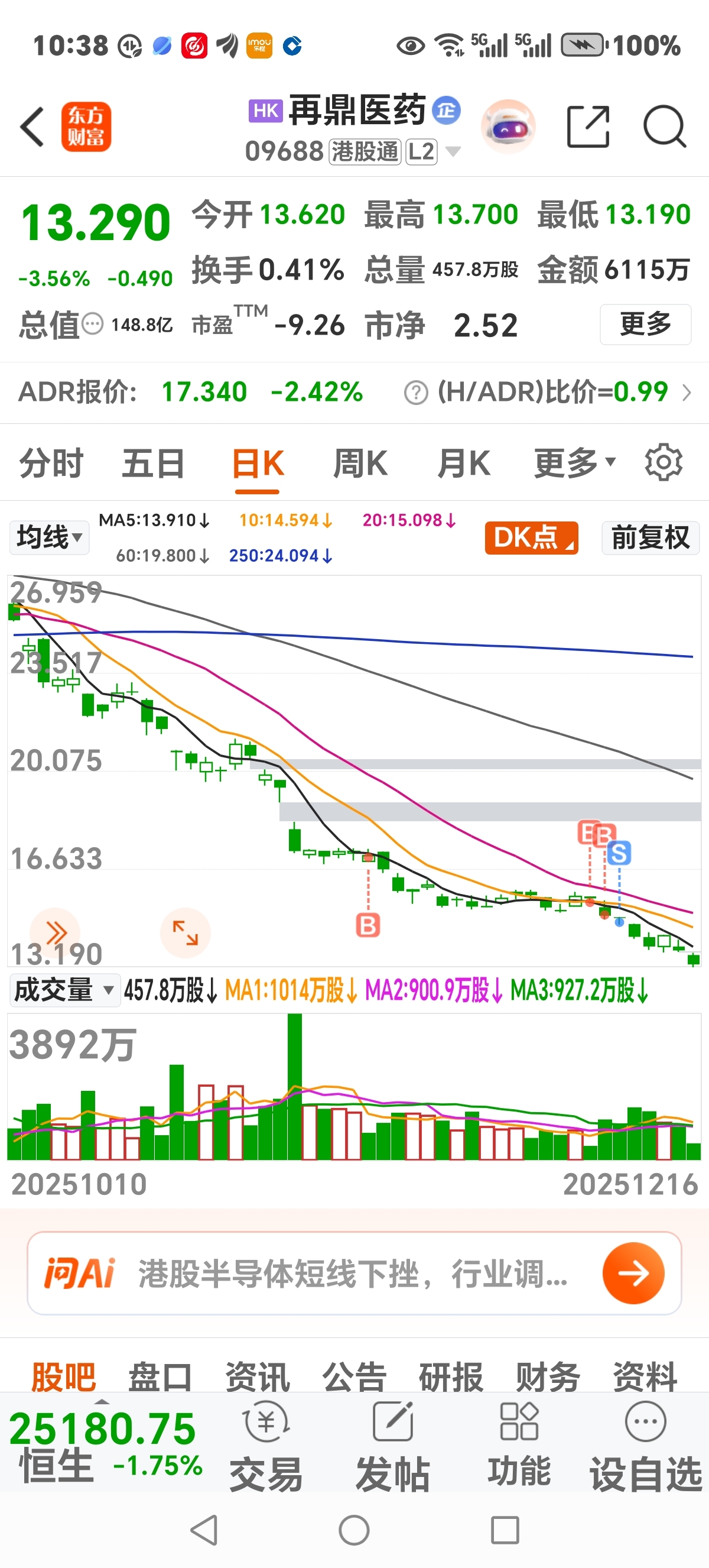 $再鼎医药(HK|09688)$ 股民朋友们,我已割肉回头看算是运气好