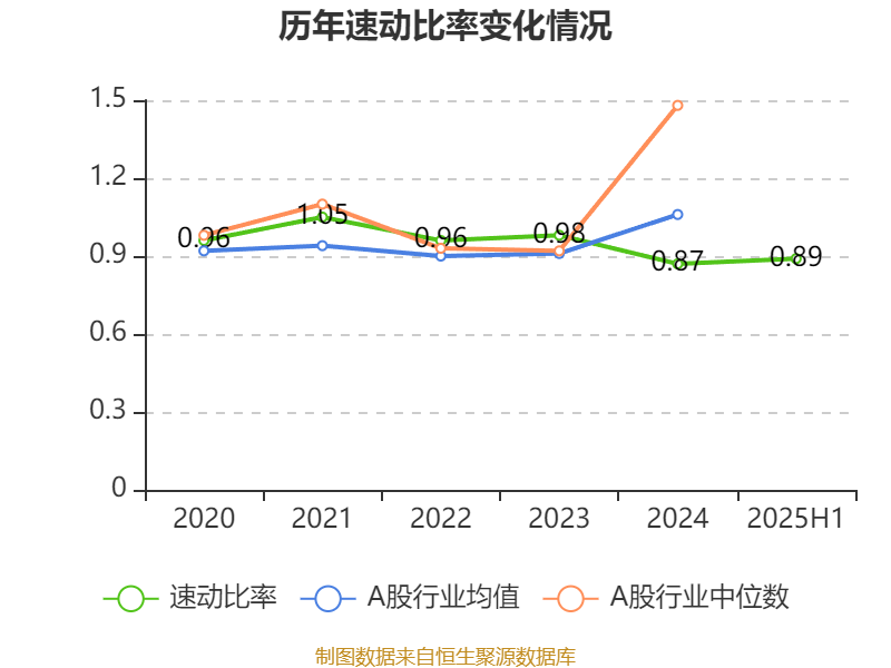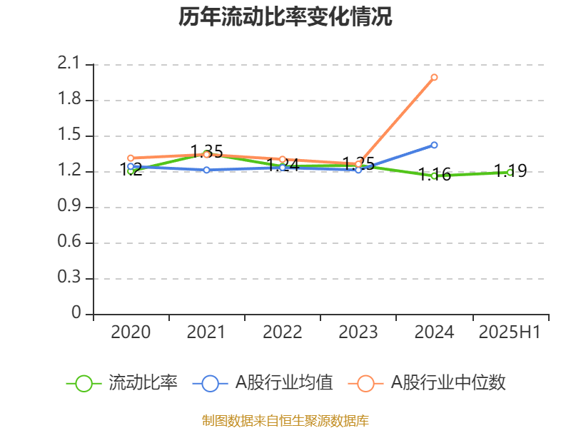 2025年上半年,公司流动比率为1.19,速动比率为0.89。