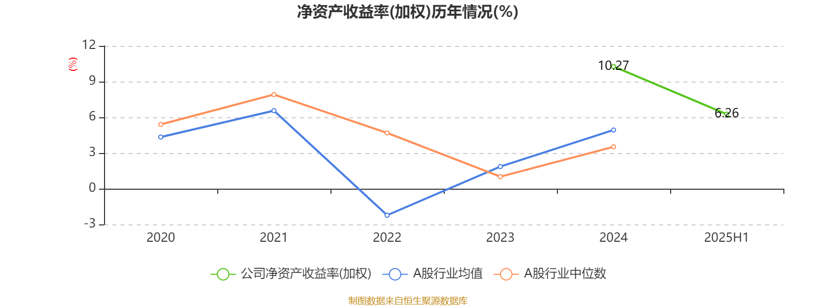 2025年上半年,公司平均净资产收益率为6.26%,较上年同期下降0.01个百分点。