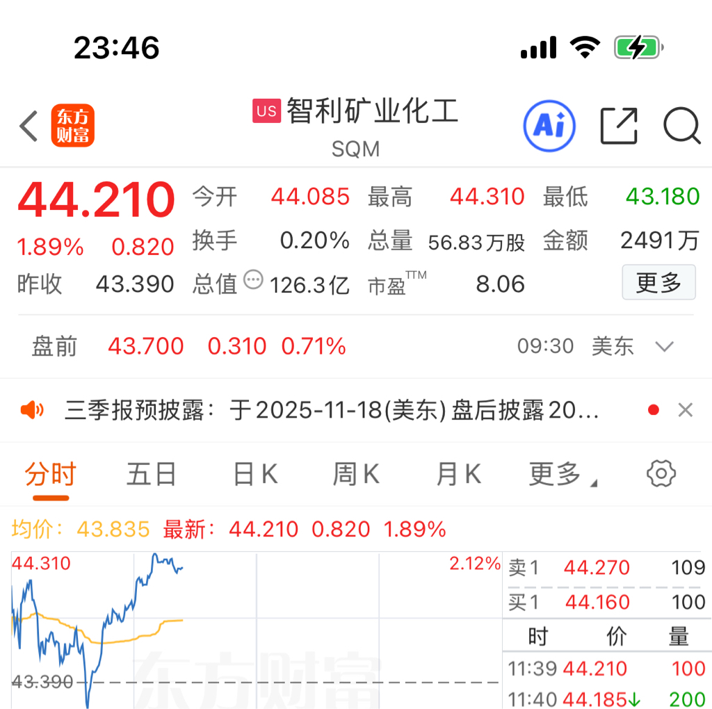 $天齐锂业(HK|09696)$ 美国雅宝和SQM都在大涨,地齐锂业明天稳了!