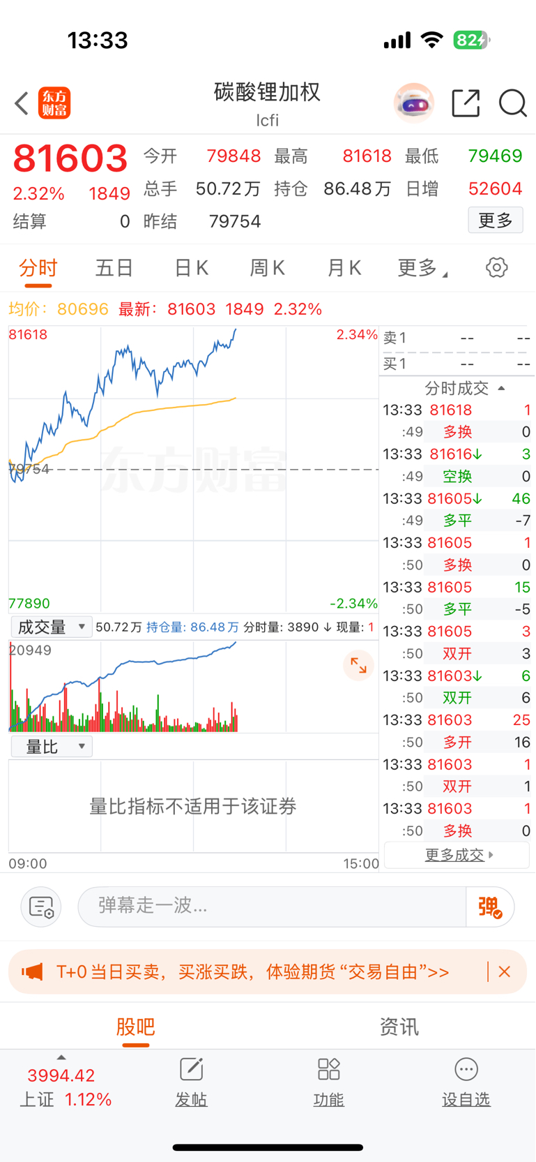 $天齐锂业(HK|09696)$ 碳酸锂期货涨幅都2.31%了