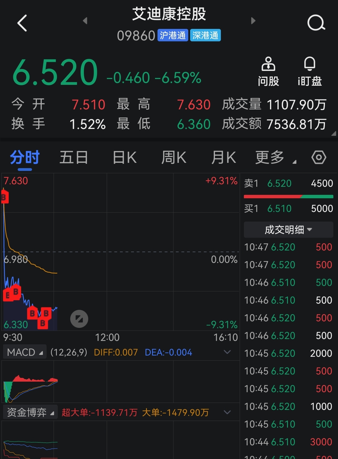 $艾迪康控股(HK|09860)$ 我的天,开盘直接到水下,幸好氢能回了血