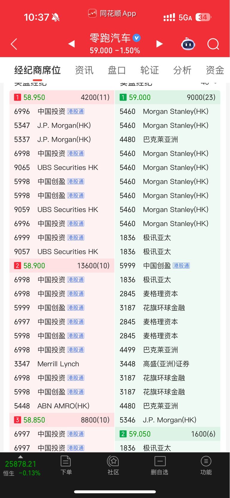 $零跑汽车(HK|09863)$ 外资卖,内资买