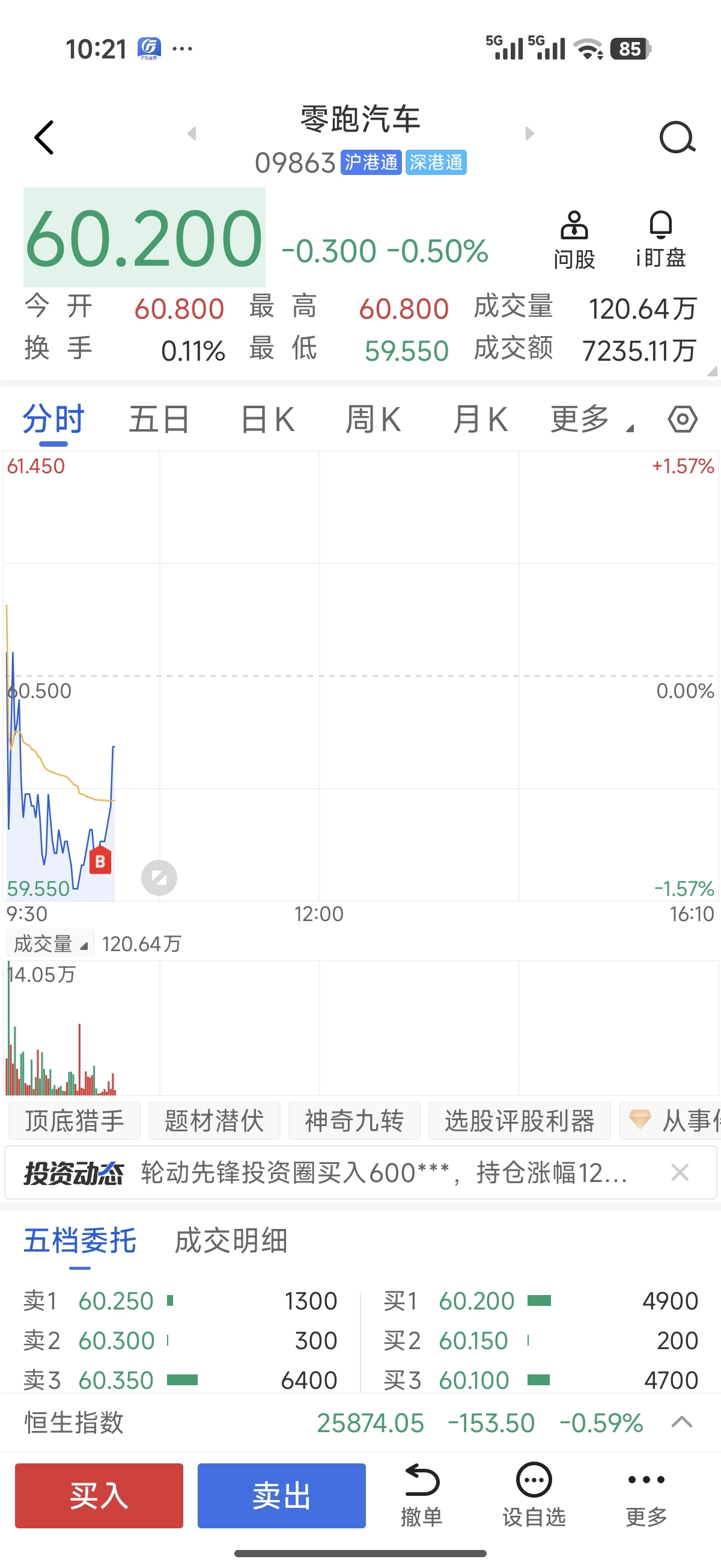 $零跑汽车(HK|09863)$ 继续加仓,零跑已经分四次加仓了,零跑持仓来到我总仓位一半了。安踏,润泽也继续加仓。
