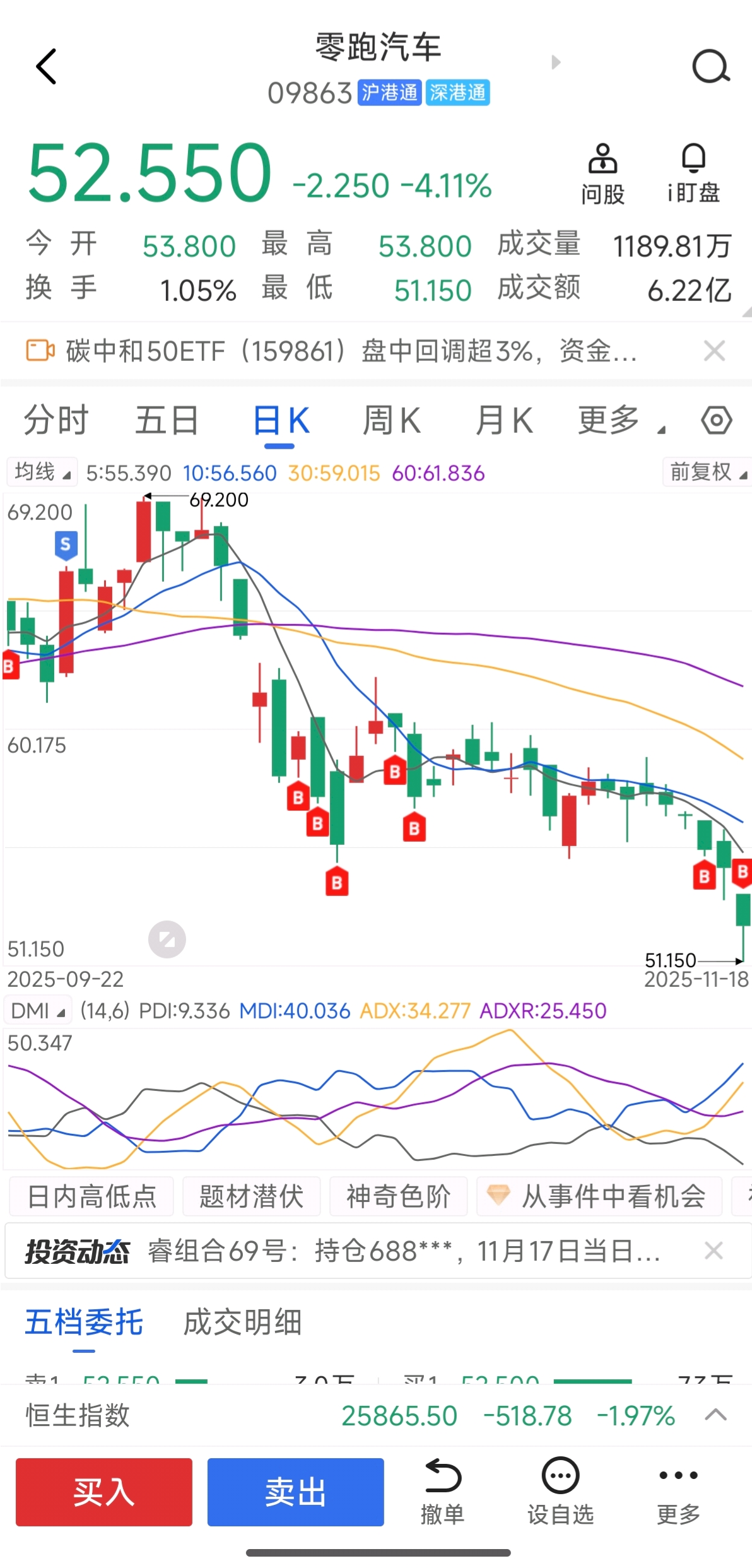 $零跑汽车(HK|09863)$ 这次买票已经分了七次购买,今年前面月份我都是全仓进满仓出,为啥这次这么谨慎,前面已经说过几次了,大盘行情不稳,跟前面月份不一样了,不得不注意风险。目前来看,大盘依旧孱弱,当然到今天为止,我希望看到的零跑强势,还是没有能看到,也只有慢慢等待了,近一个月也一直在提醒大家控制仓位,注意风险,后面我也只有三层仓位了,会更加谨慎出手了。