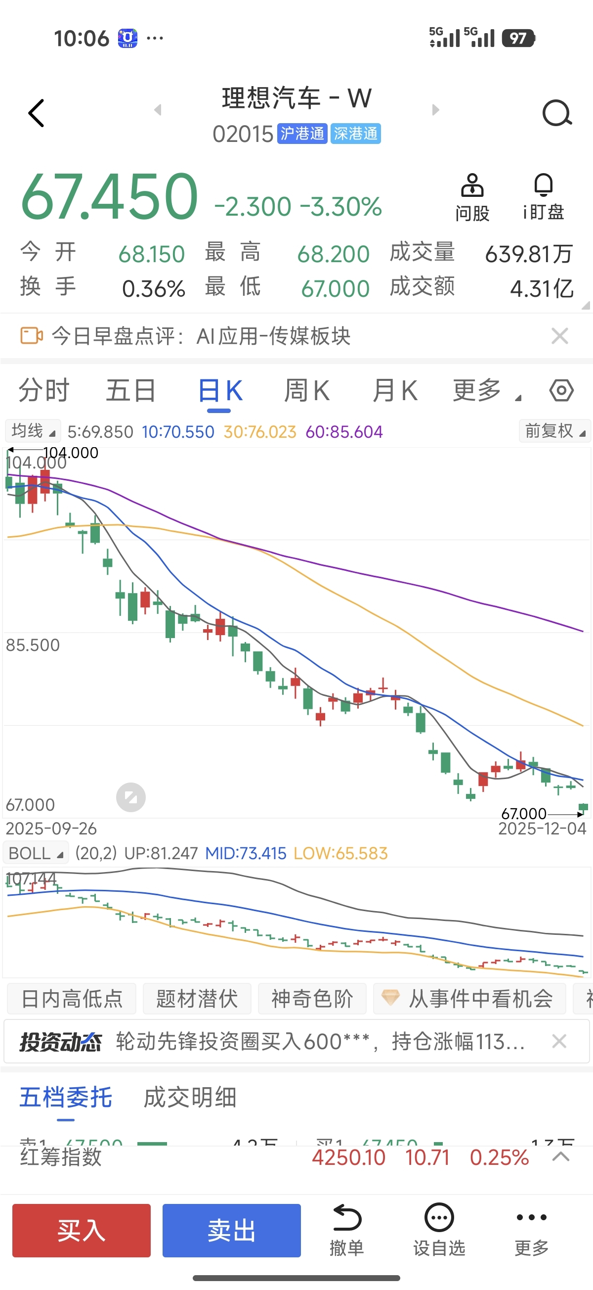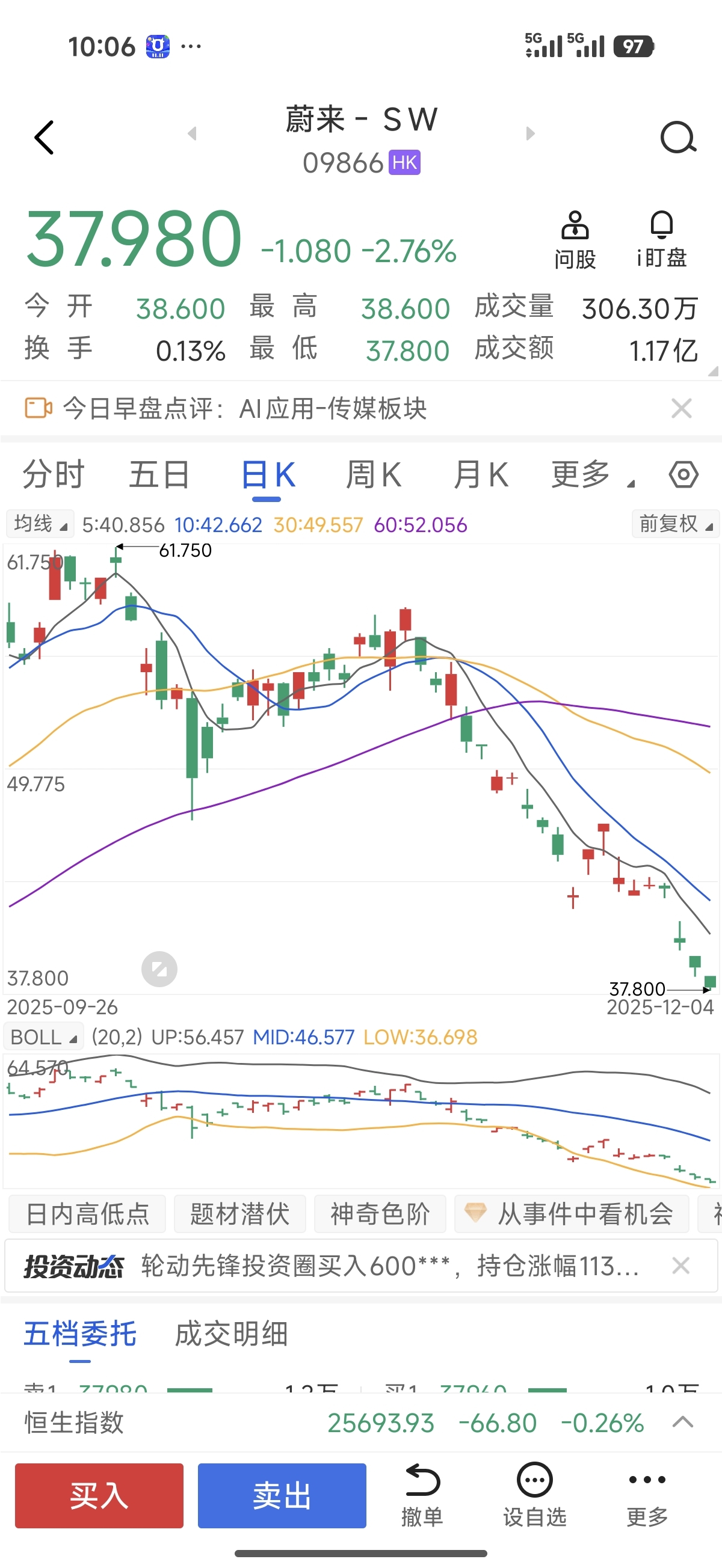 蔚小理跌太厉害,对零跑也不是好事,影响估值,最近能稳着就不错了,慢慢等待机会。