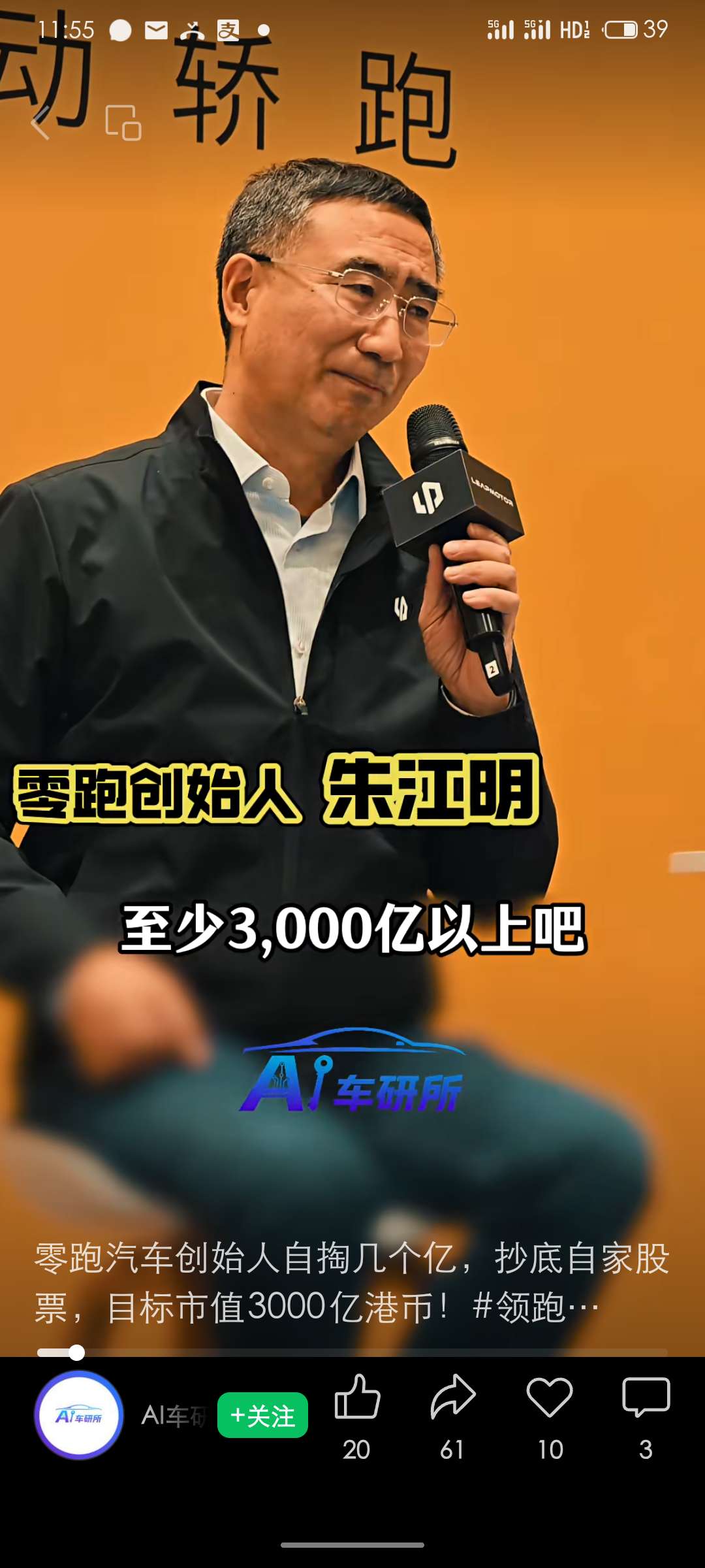 $零跑汽车(HK|09863)$ 留意到朱江明总前几天的视频讲话,关于市值的内容: